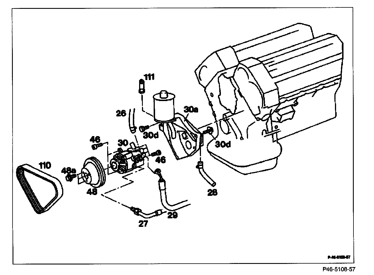Remove Power steering pump (30) with carrier (30a).