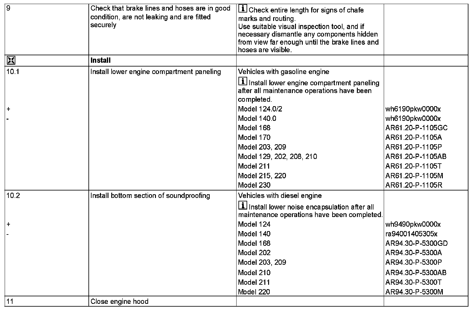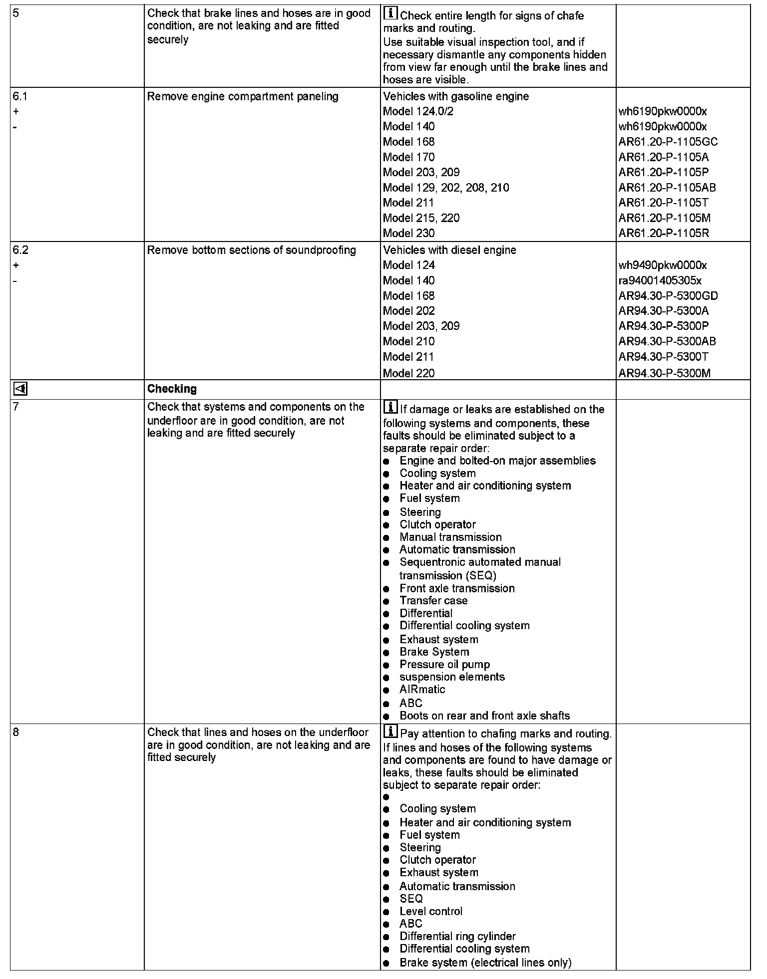 - MODEL 124, 129, 140, 168, 170, 202, 203, 208, 209, 210