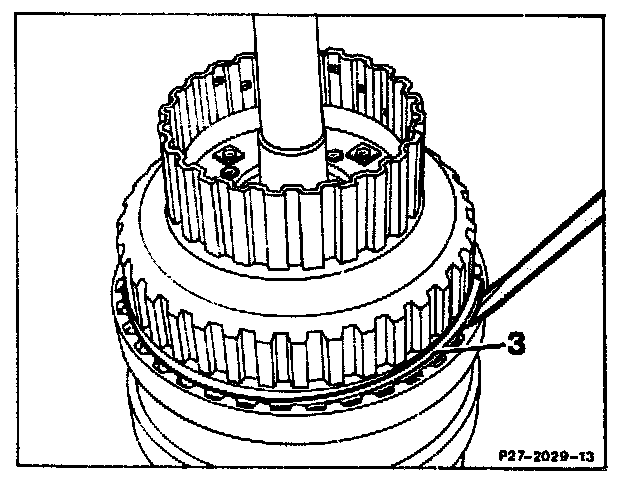 After inserting, press snap ring into the groove with a screwdriver after the front gear set has been fitted on.