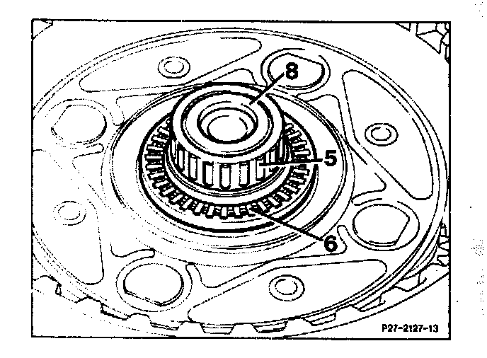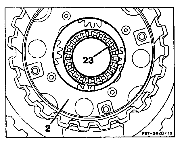5. Remove axial bearing (23) from planet gear set and examine.