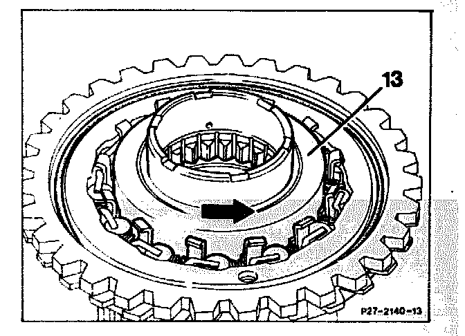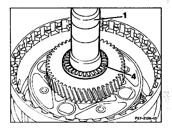 Remove complete from connection carrier (7), insert. After assembly, adjust end play of freewheel connection carrier to 0.05 - 0.2 mm.