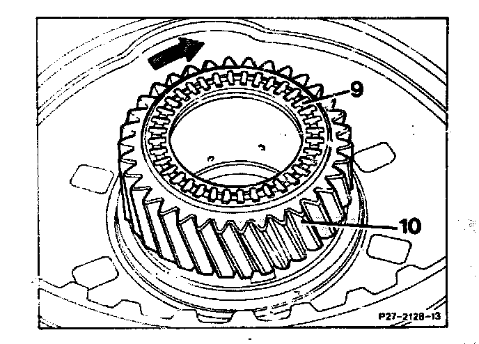 9. Take off axial bearing (9) and pull out sunwheel (10).