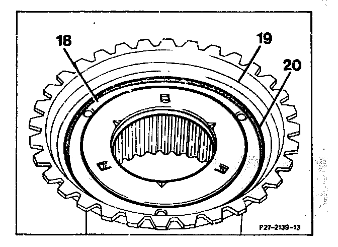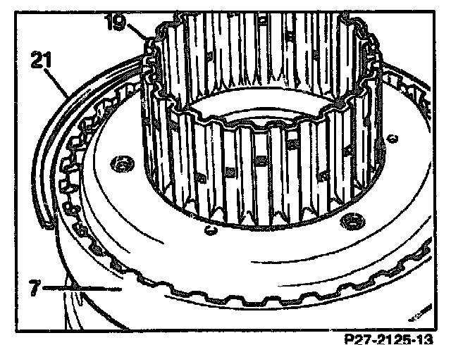 19. Check end play of freewheel and adjust. Check play between freewheel and connection carrier (7) with a feeler gauge.