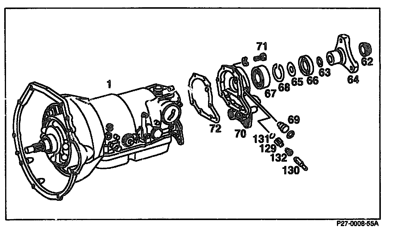 2. Withdraw radial seal (132) from the rear transmission cover (70) and replace.
