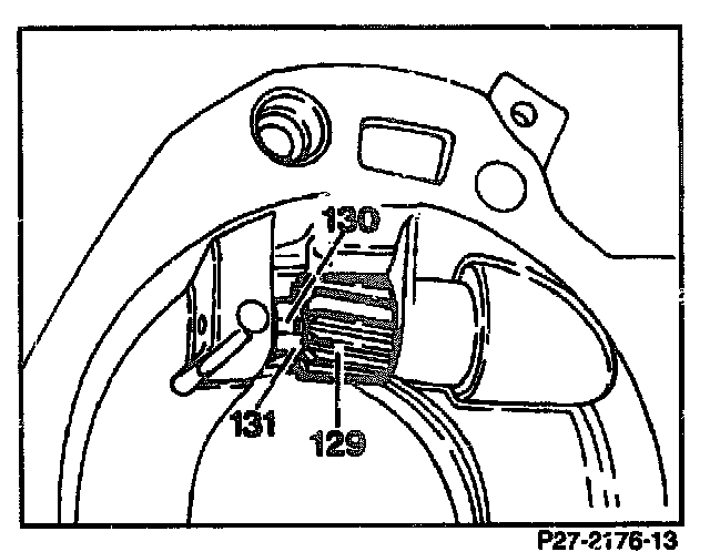1. Remove drive gear (129) for mechanical speedometer. Take off retaining element (131), take out shaft (130) and drive gear (129).
