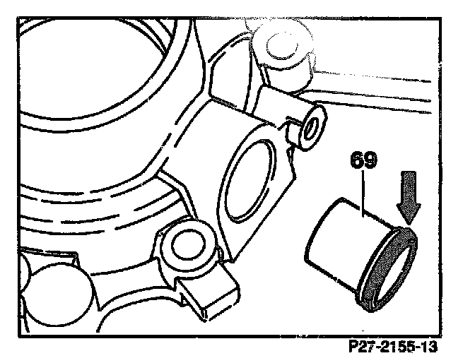 3. If a new plastic bush (69) with O-ring (arrow) has to be installed in vehicles with electronic speedometer insert this with shop-made drift.
