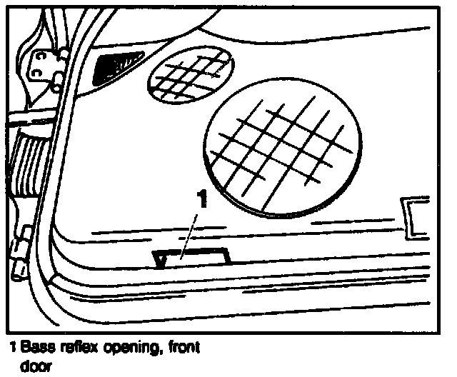 Check bass reflex openings (1) on the bottom of the front and rear doors.