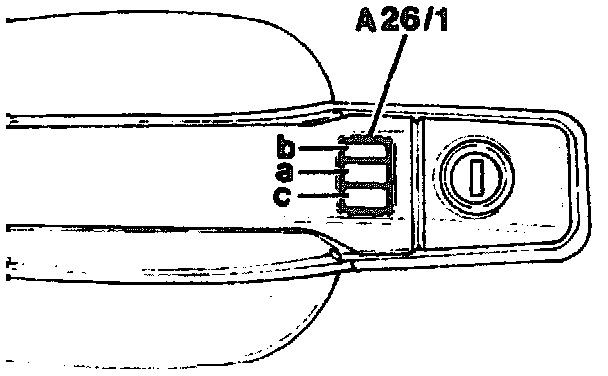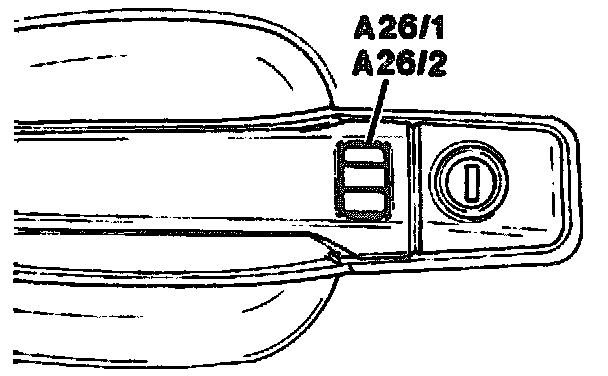 The driver's door (A26/1) and front passenger door (A26/2) receiver units are located in the driver's door handle.