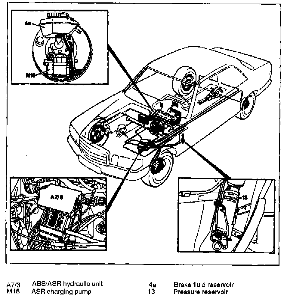 Acceleration Slip Control (ASR) compliments ABS system. ABS prevents wheel lock-up during braking whereas ASR prevents wheel spin caused by acceleration, resulting in better traction. basic ABS components are supplemented by an expanded hydraulic unit, Fig. 7, a charging pump, a fourth wheel speed sensor and a more comprehensive electronic system.