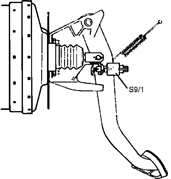 The stop lamp switch (S9/1) is mounted to top of brake pedal lever.