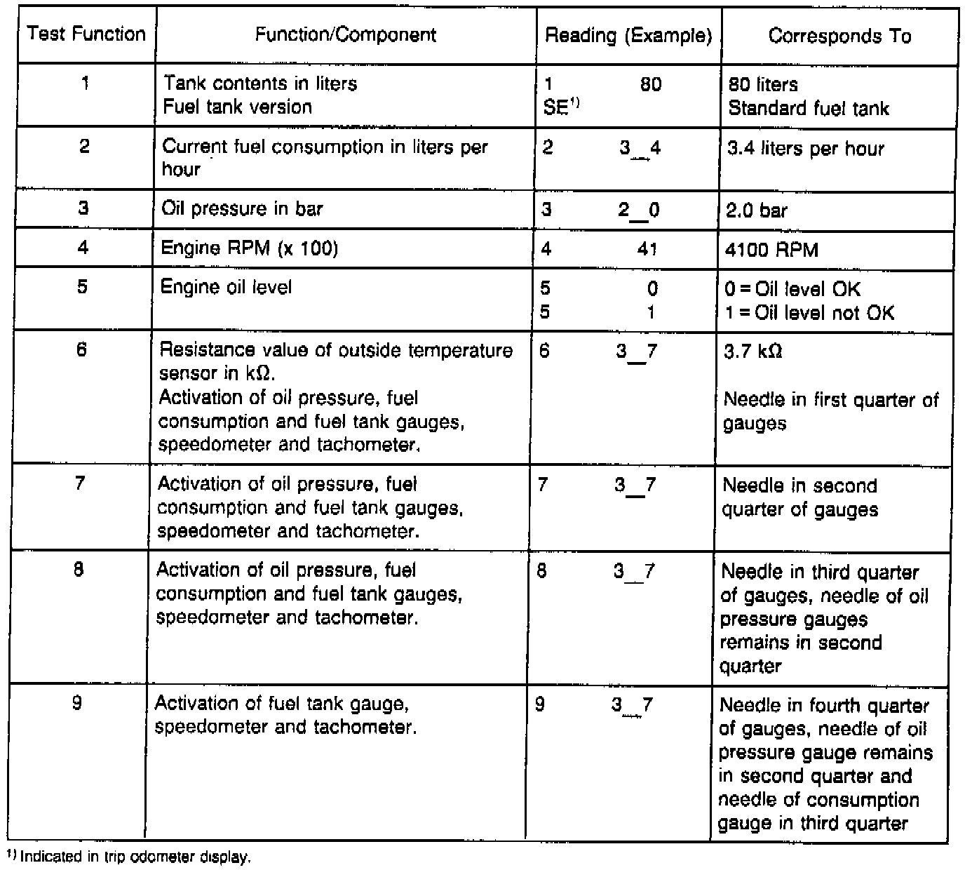 The diagnostic mode can be accessed as before, by using the clock setting knob. The test step is indicated by the left digits and the test result by the right digits of the odometer display.