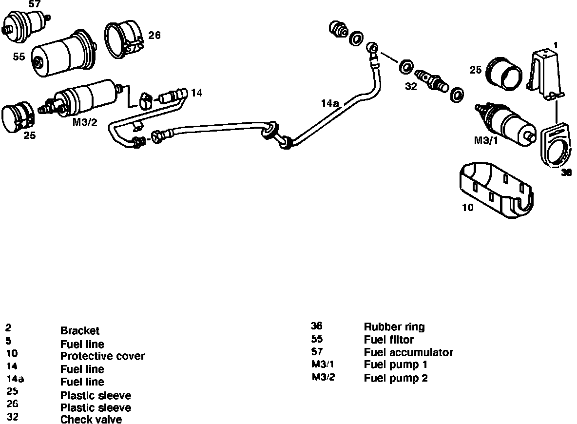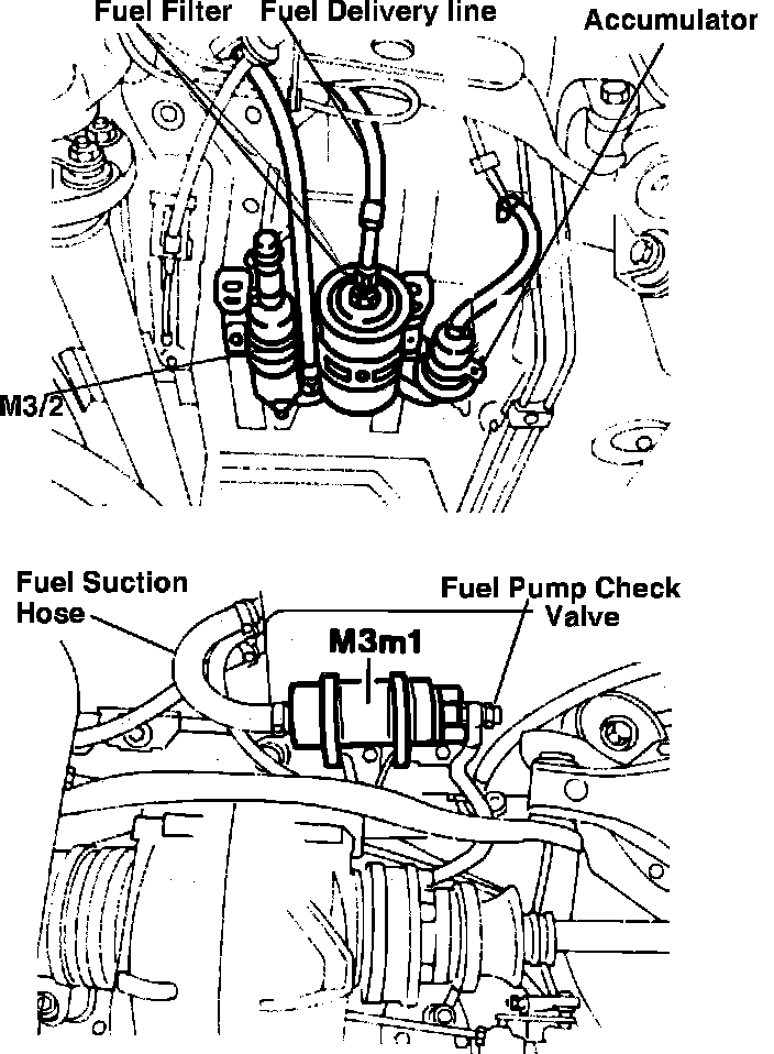 8. Remove the fuel pump connecting line between fuel pumps M3/1 and M3/2.