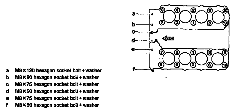 "Closed-Deck" Cylinder Head Bolts Numbers 1 to 10 = M12 x 160 mm