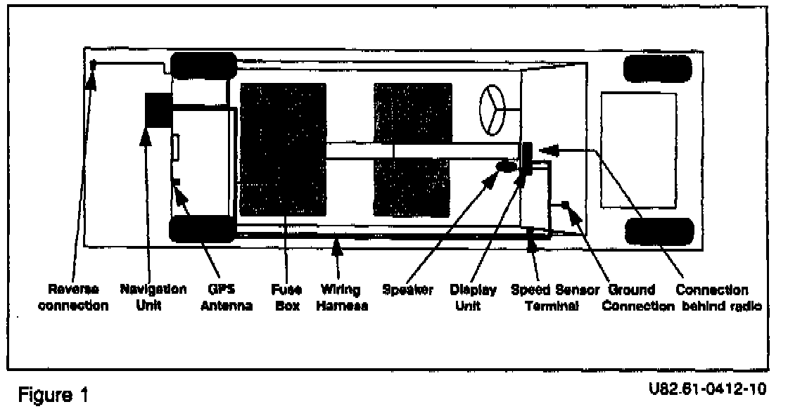 These Work Instructions show the proper procedures for installation of the GPS navigation system in model 210 sedans, without Parktronic. The installation must be conducted precisely as described with the material supplied (screws, lock washers, etc.) only. Before starting installation make sure to get the CD for the navigation unit; it is not a part of this kit.