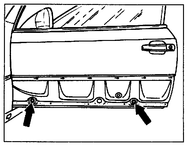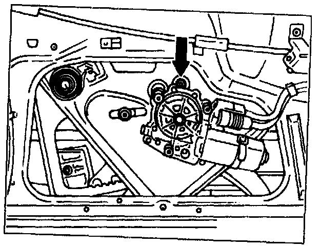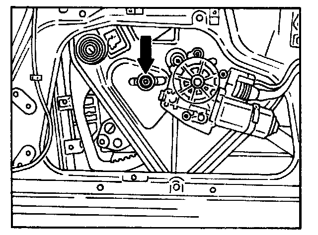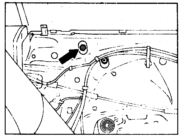 on top mounting screw for rear guide rail (oblong hole in inner door panel).