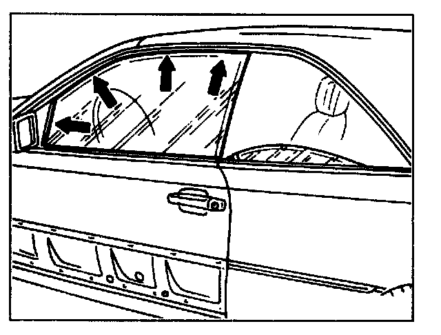 close until front of window moves into window guide rail on mirror triangle.