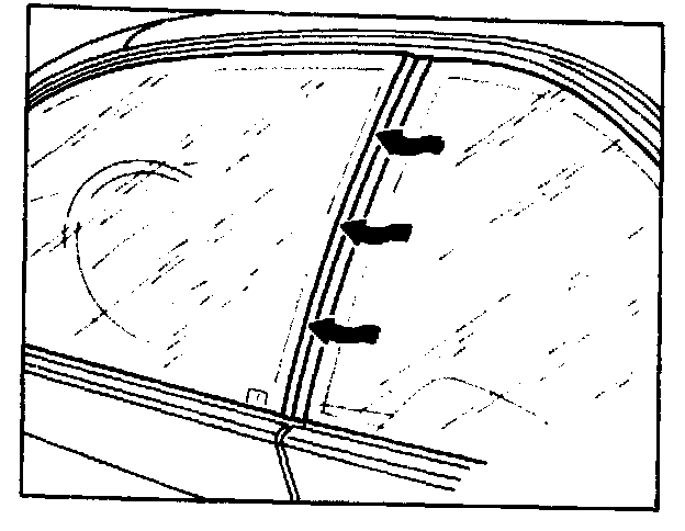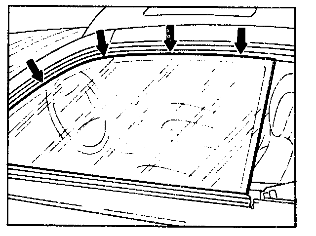 NOTE: The outer top edge of the glass should contact the outer rubber lip on the sealing frame over the entire length.