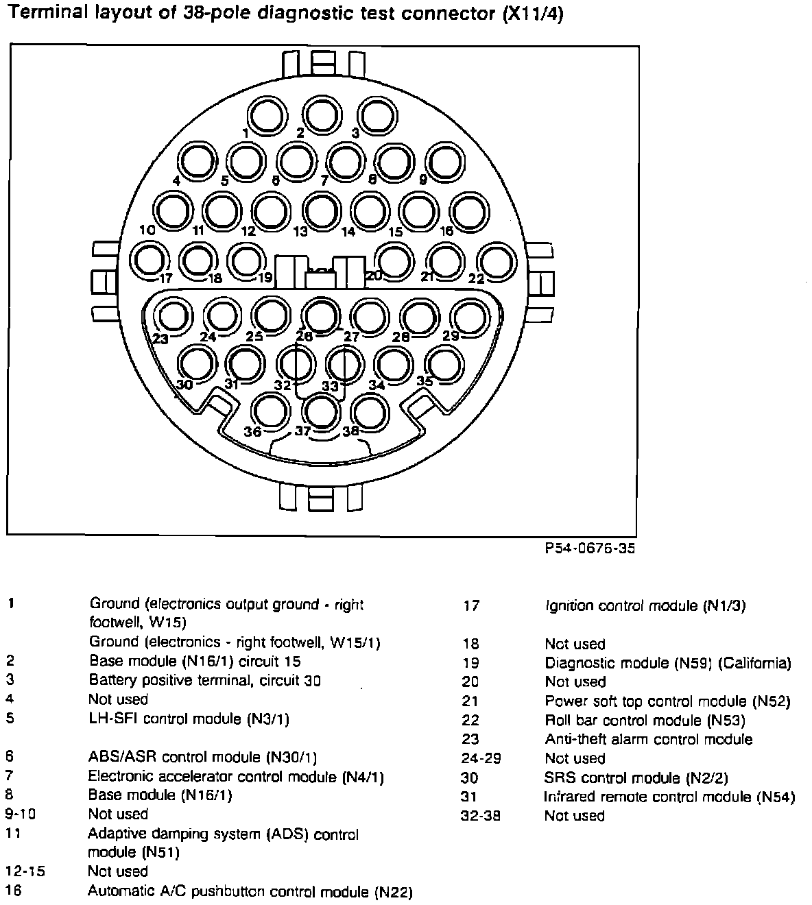 PURPOSEThe diagnostic socket (X11/4) is the interface connector for the control modules and the special Mercedes Benz or Bosch test equipment. By connecting the test equipment, the technician can access and diagnose individual engine management systems.