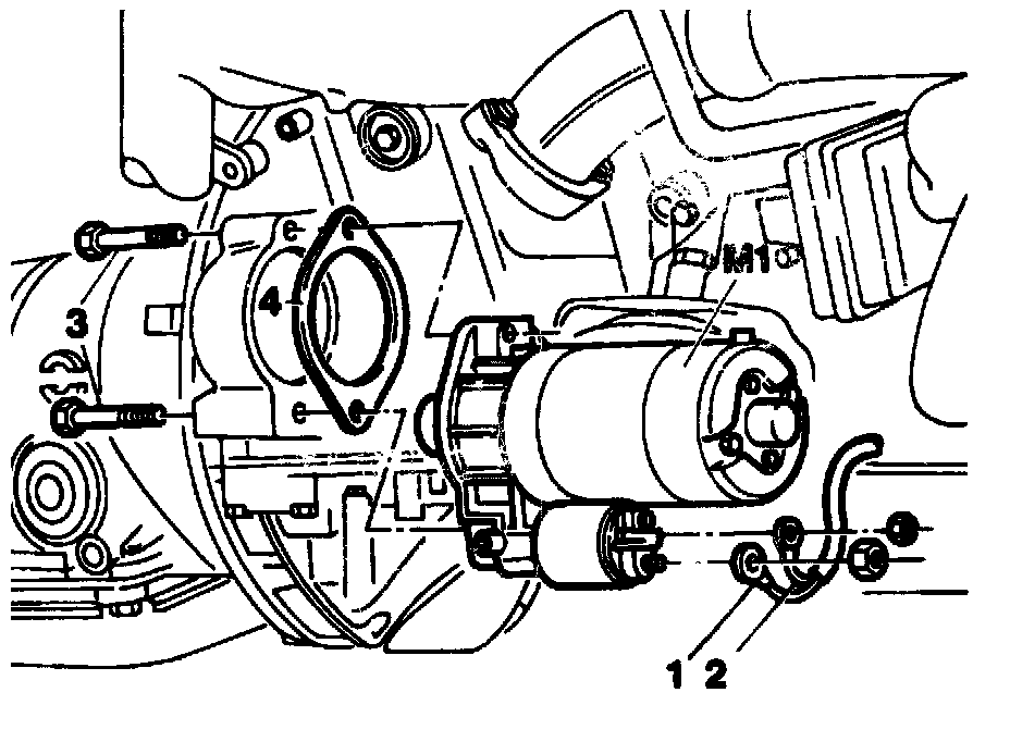 Electric wiring (1 and 2) at starter (M1)