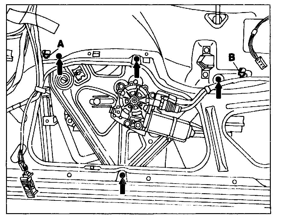 Assembly hooks (A and B) for window lift on inner door panel