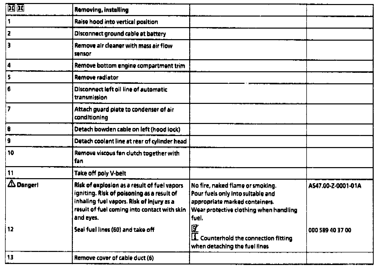 - Before carrying out such work, remove the relevant parts of the fuel system and seal off open fuel lines with plugs.