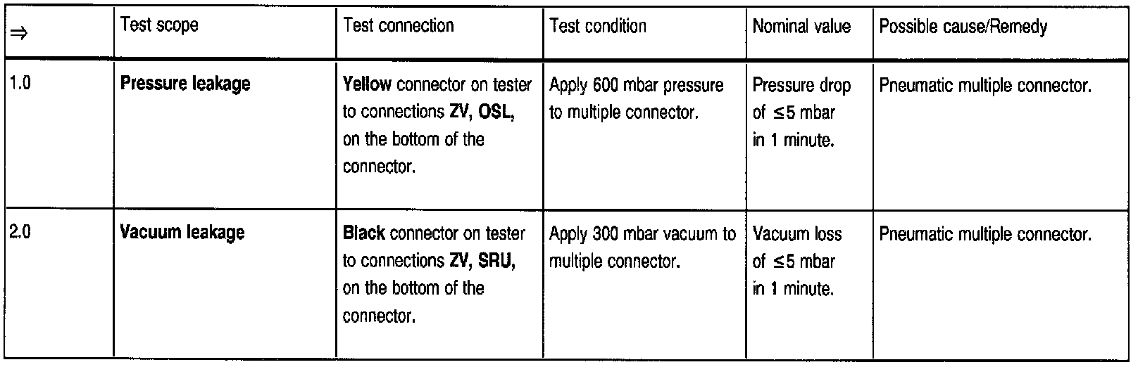 3. Connect vacuum/pressure tester to the bottom side of the pneumatic multiple connector to test the individual connections ZV, SRU, OSL.
