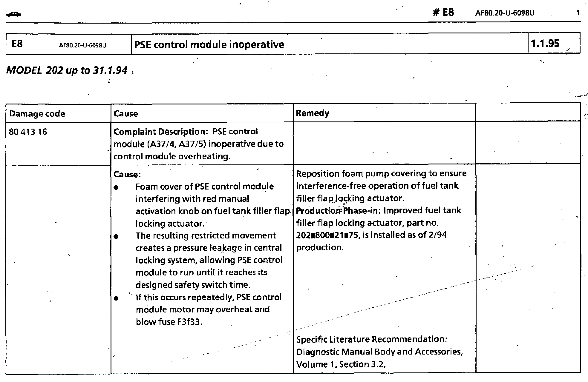 PSE Control Module Malfunction