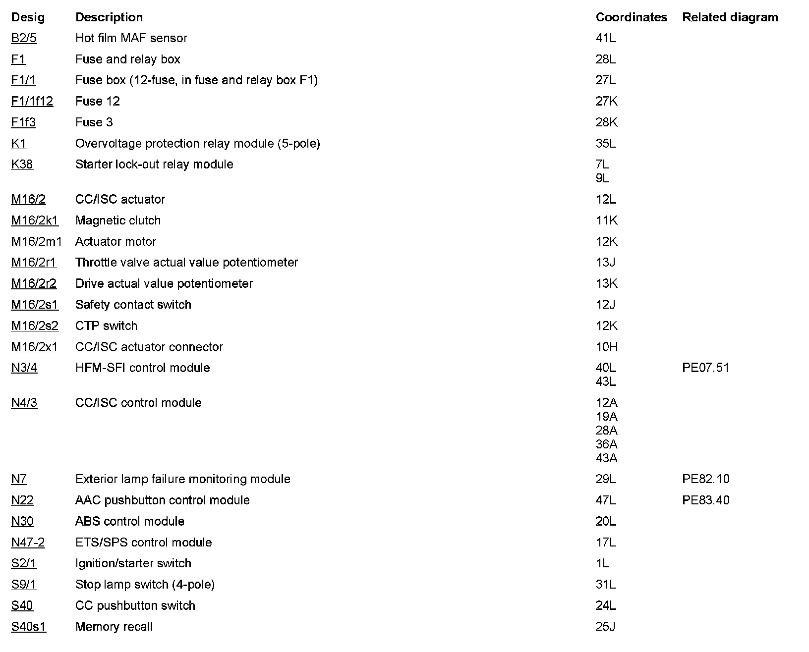 Component Description/Coordinates, B2/5 To S40s1: