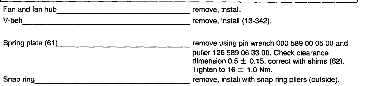 Caution! If the same pulley is reinstalled, clean the friction surface on the pulley. If the friction surface is damaged (e.g. due to overheating), replace pulley together with spring plate.