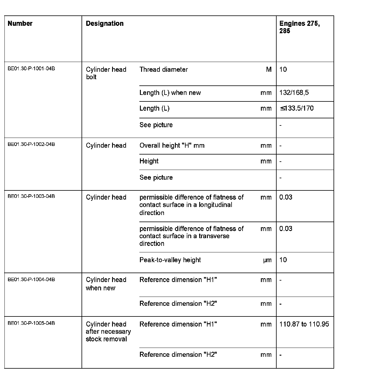 BE01.30-P-1000-04B Cylinder Head/Cylinder Head Bolts