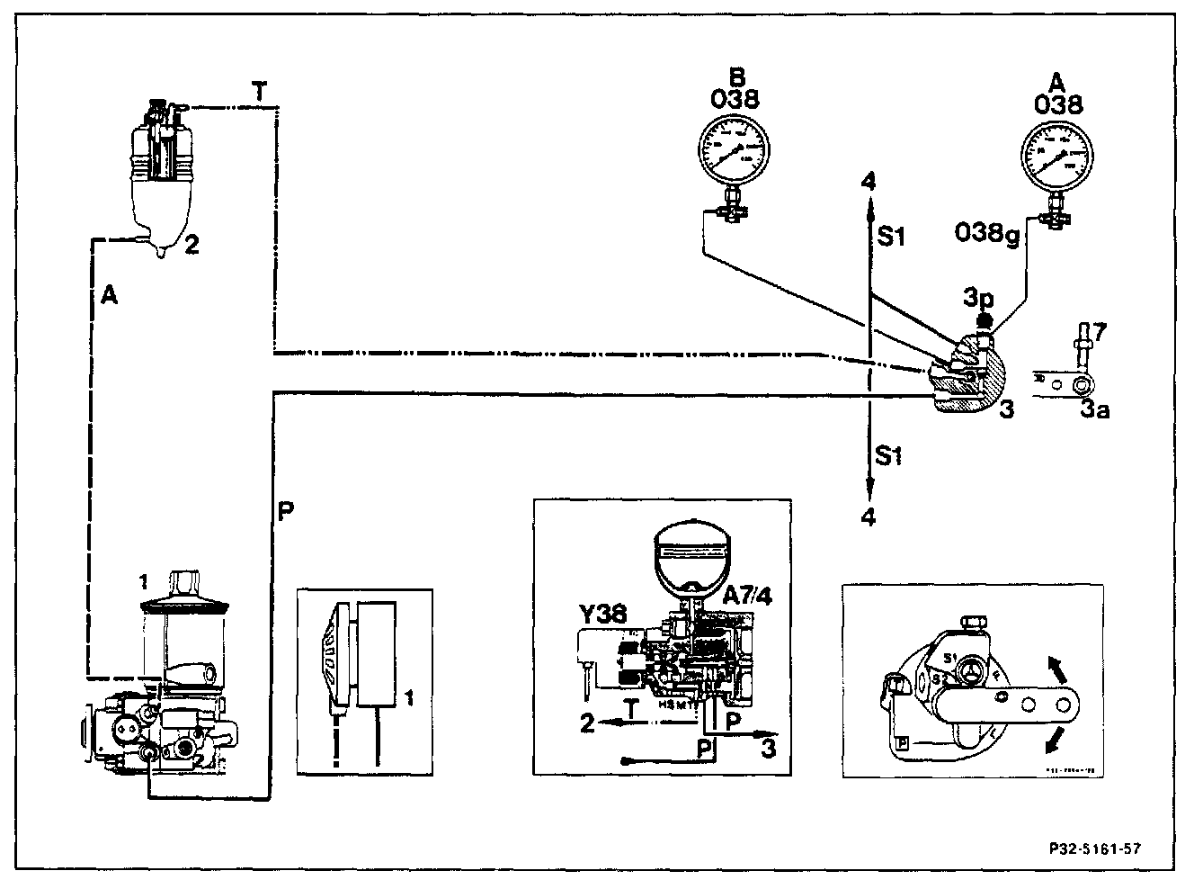 8 Connect pressure tester (038) to level control unit (3) with test hose (038g).