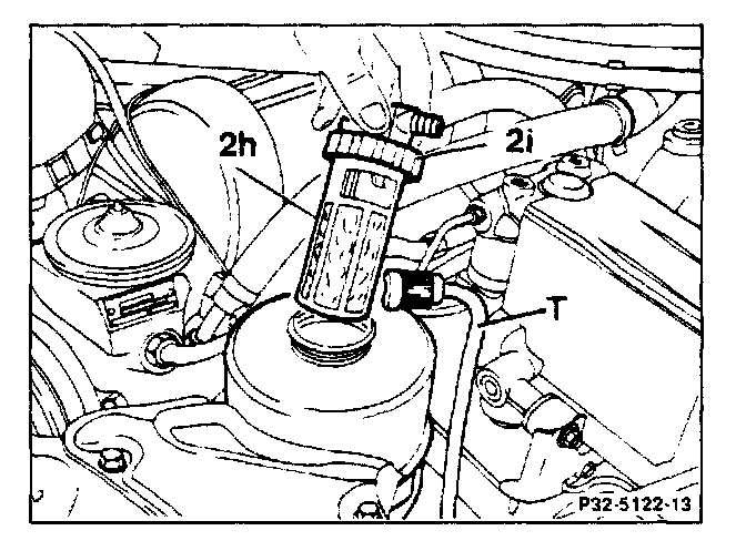 1 Disconnect return line (T). Unscrew union nut (2i) and remove oil filter (2h).