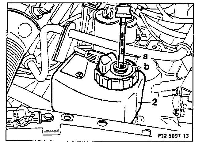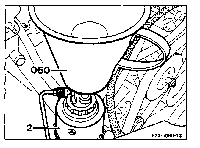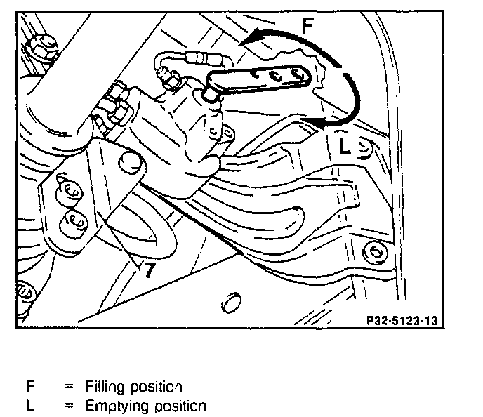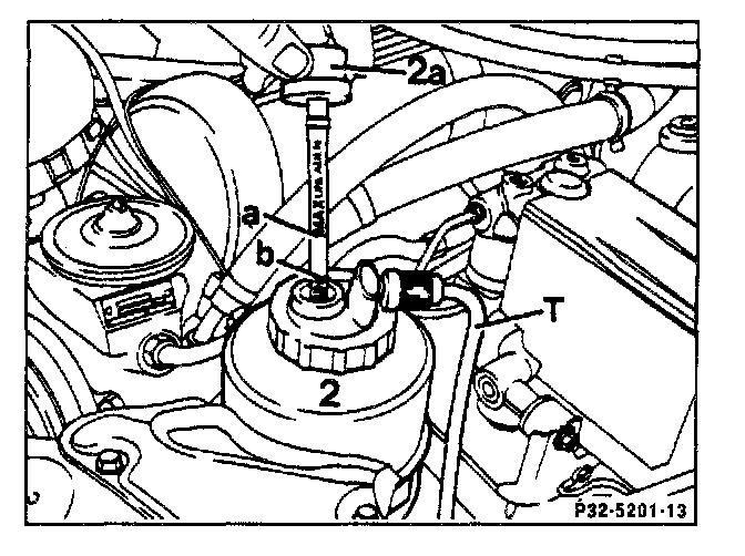 check and if necessary add hydraulic oil 000 989 91 03 using funnel 126 589 12 63 00 (item 21).