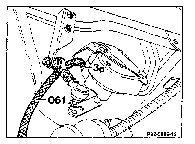 5 Plug oil drain hose (061) on the oil drain plug (3p) on level control unit.