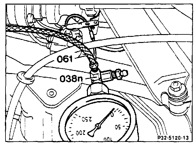 The pointer on the pressure tester 126 589 14 21 00 must display a pressure of at least 133 bar (item 10).