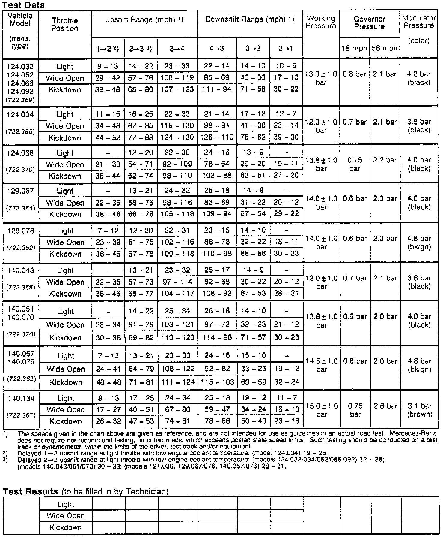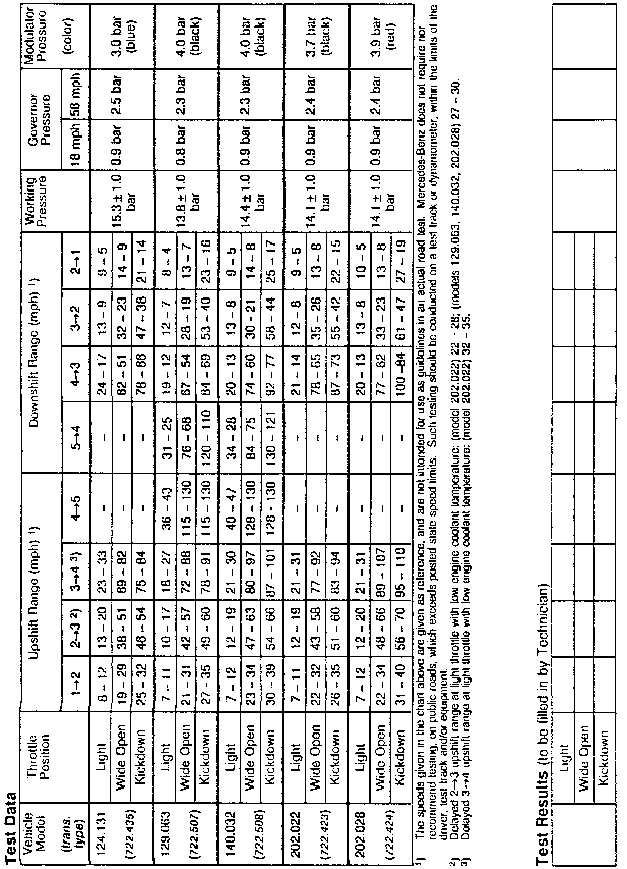 Included with this Service Information is one sample illustration of each respective transmission test sheet for transmission types 722.3 and 722.4/5.