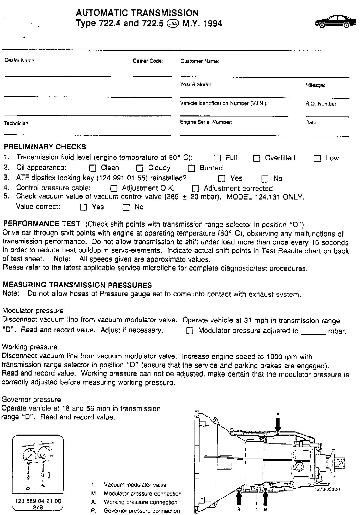 Test Sheet for A/T 733.4 / 722.5 M.Y. 1994
