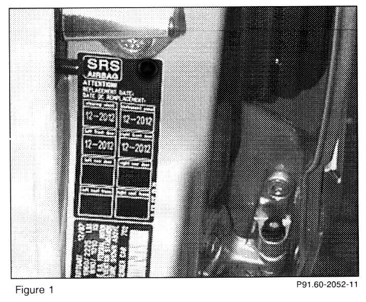 1. A blank replacement label (Figure 1) should be ordered (see Parts Information), along with the appropriate replacement date label insert for the airbags which are still functional (not being replaced) (Figure 2).