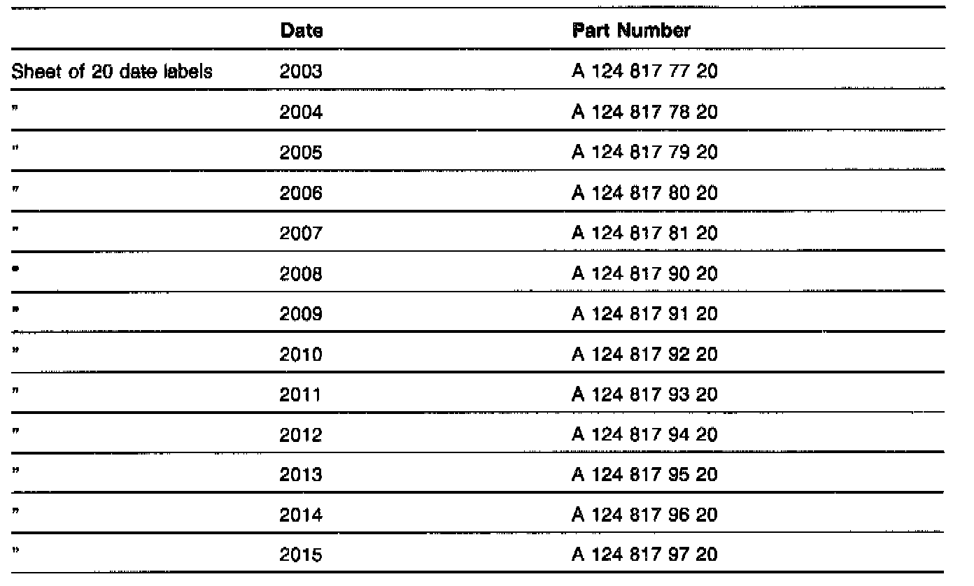 2. To determine which replacement date label insert to order, add 15 years to the production year of the vehicle (see "Determining proper replacement date label insert").