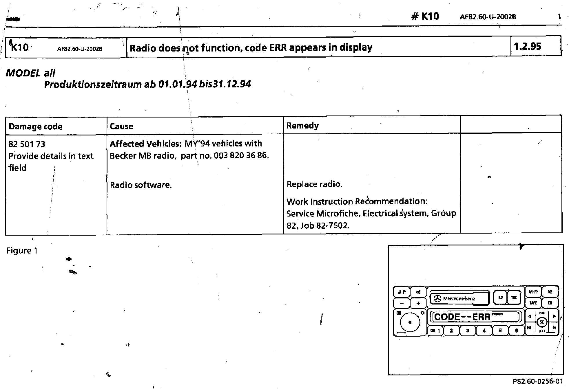 Radio Inoperative - Code ERR Appears in Display