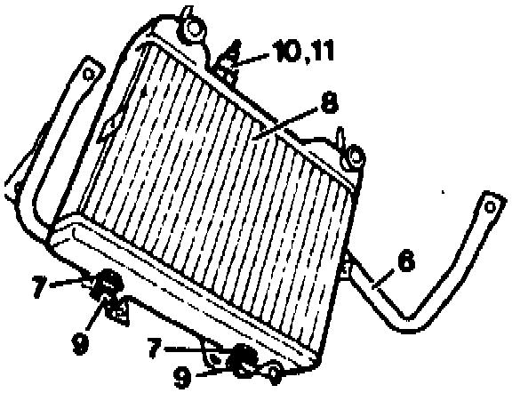 8. Check air-oil cooler (8) for damage and leaks. Check temperature switch (10).