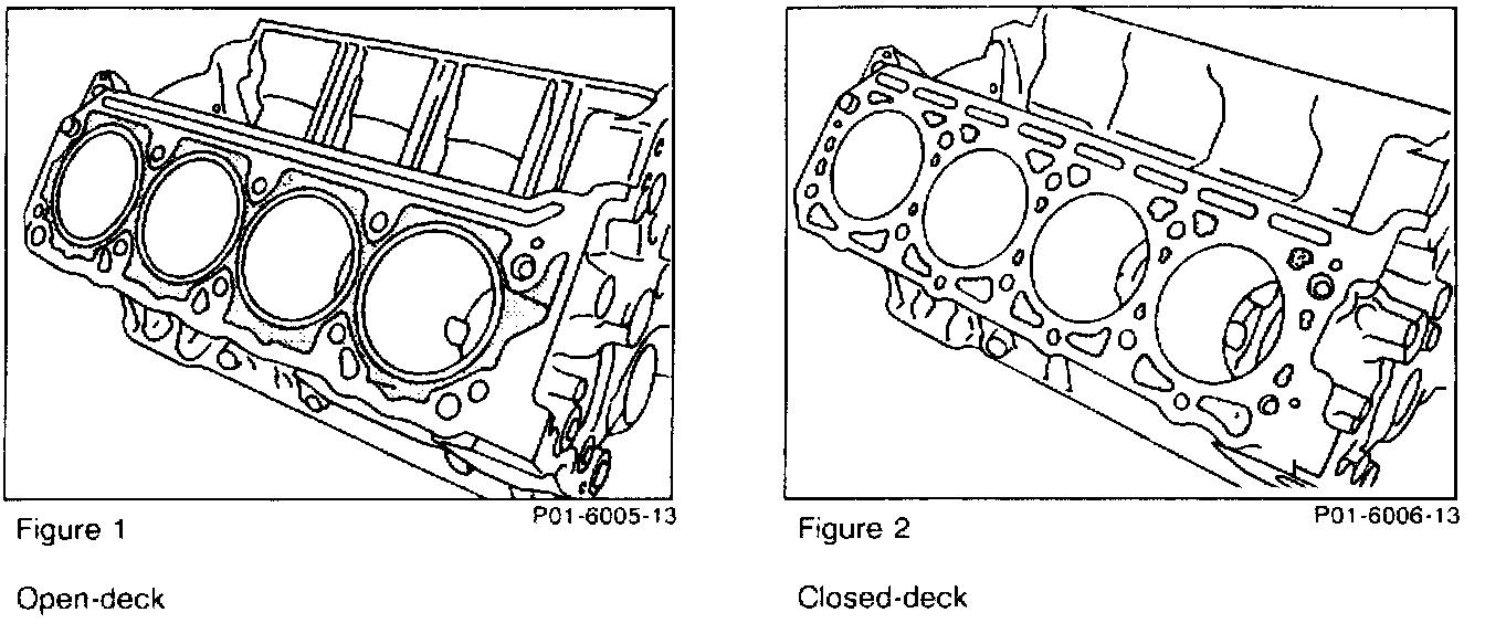 The open-deck design allows the cylinders to be "free-standing" in the engine block (Figure 1) as compared to the closed-deck design (Figure 2).