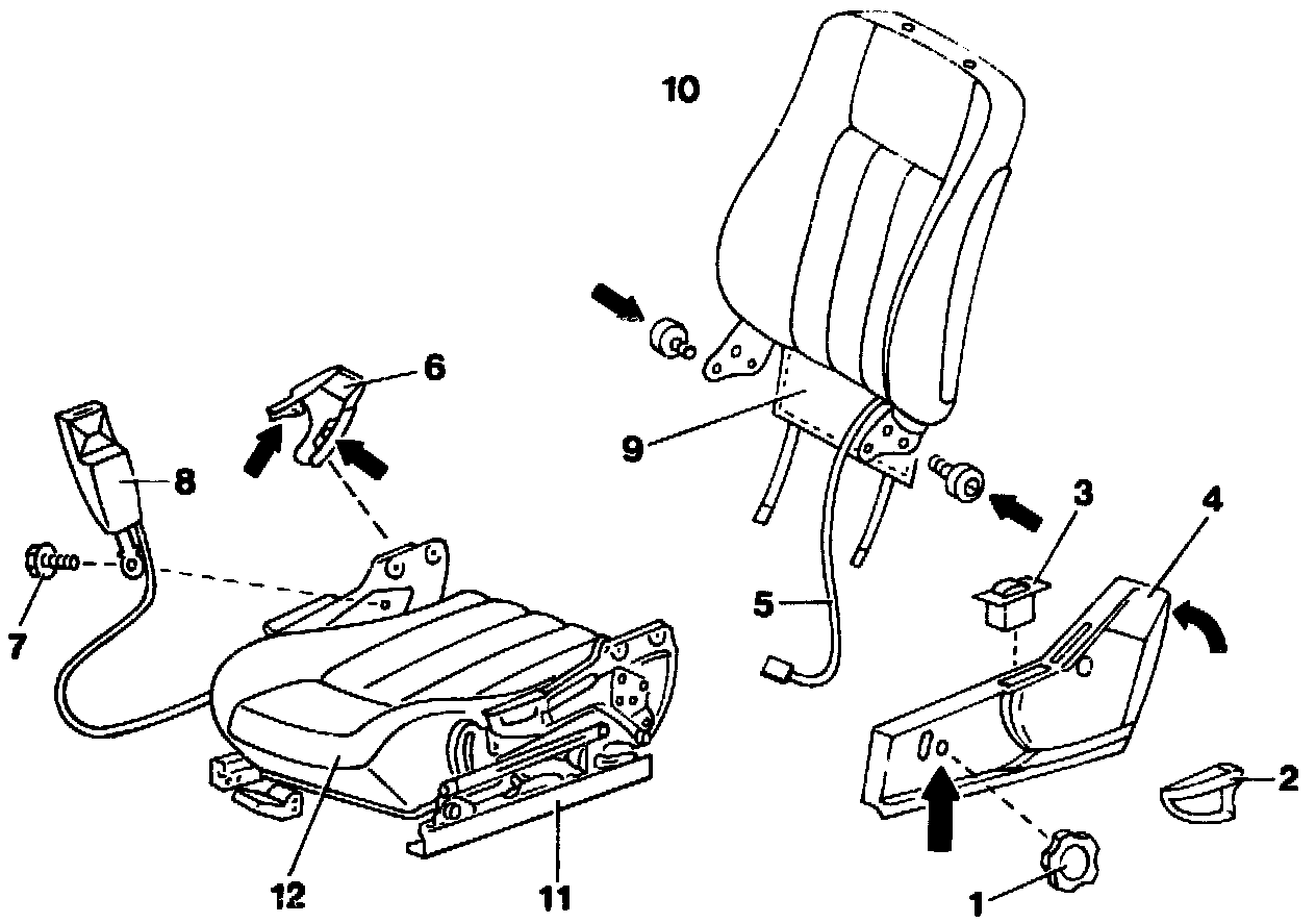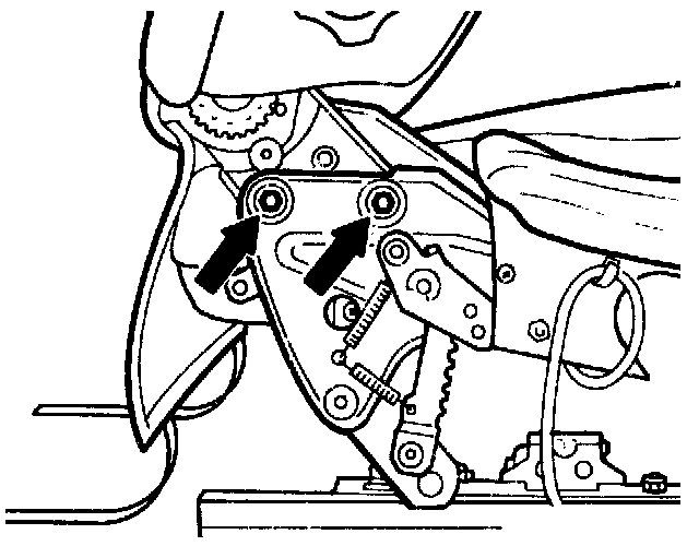 10 Screw out screws (arrows) on left-hand backrest fitting.
