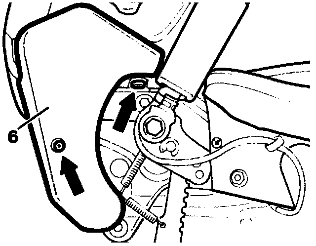 7 Unscrew screws (arrows) on panelling (6) and remove panelling (6) upwards.