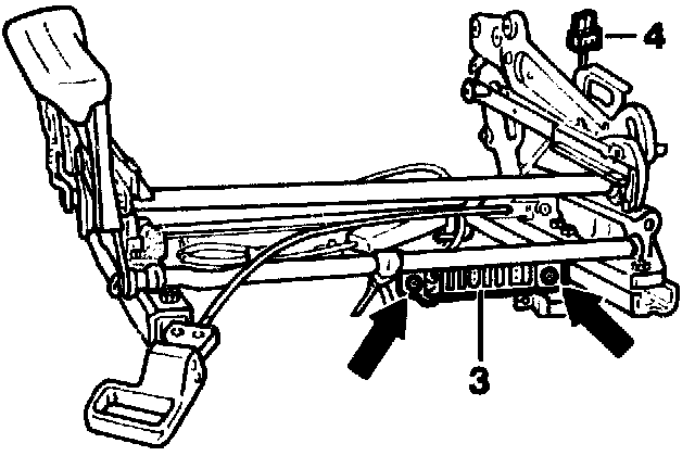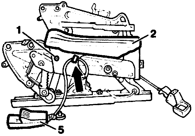2 Unclip electric cable from belt buckle (5) on seat frame (arrow).