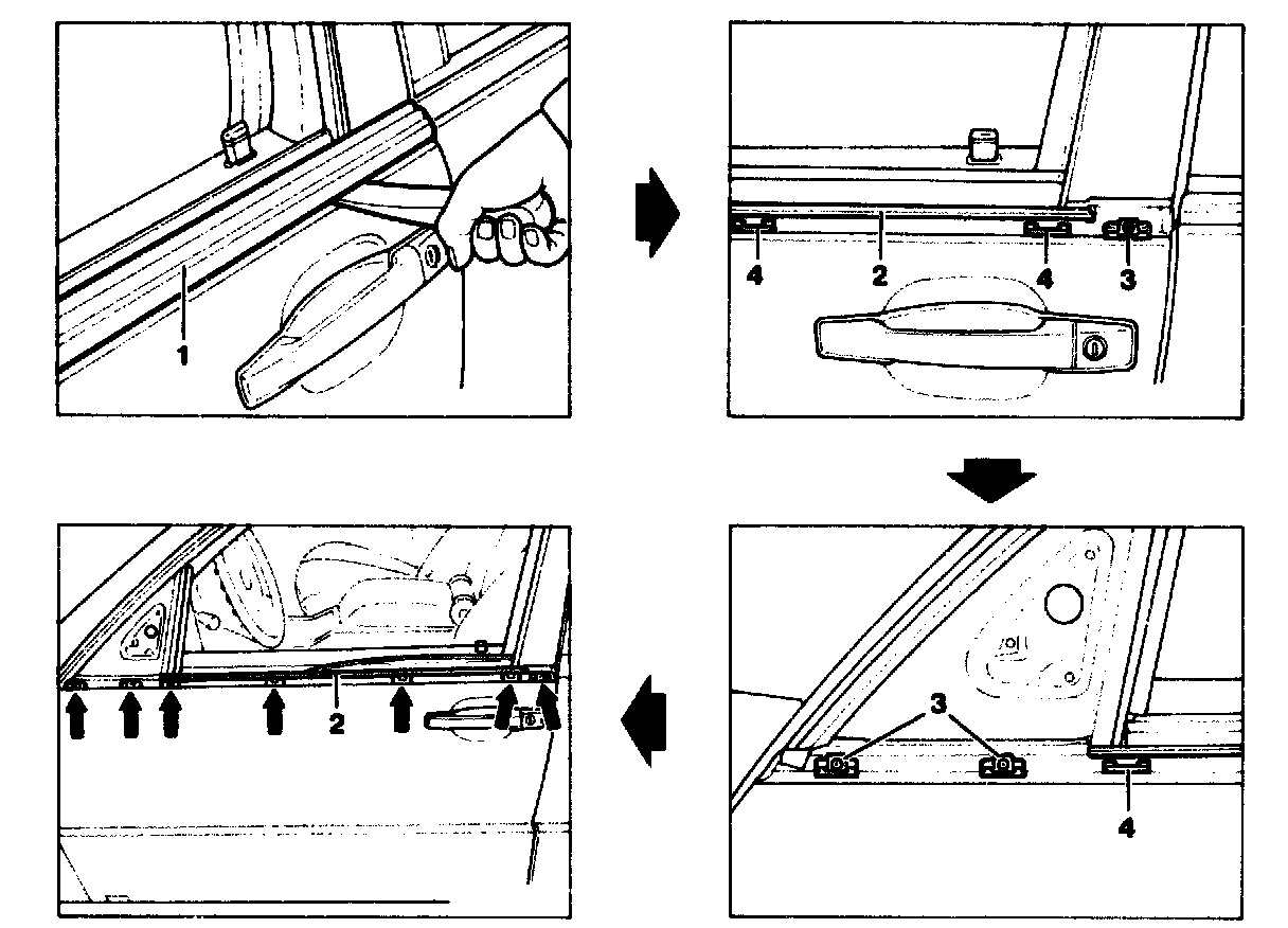 Retaining clips (3) on door panelling