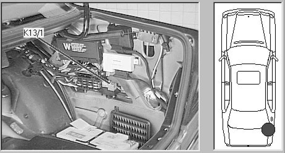 Right side of Trunk compartment, to rear of rear fusebox (F4).