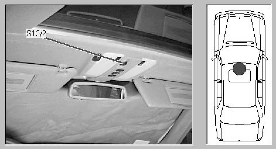 Passenger compartment, center of windshield header, within dome lamp (E15).