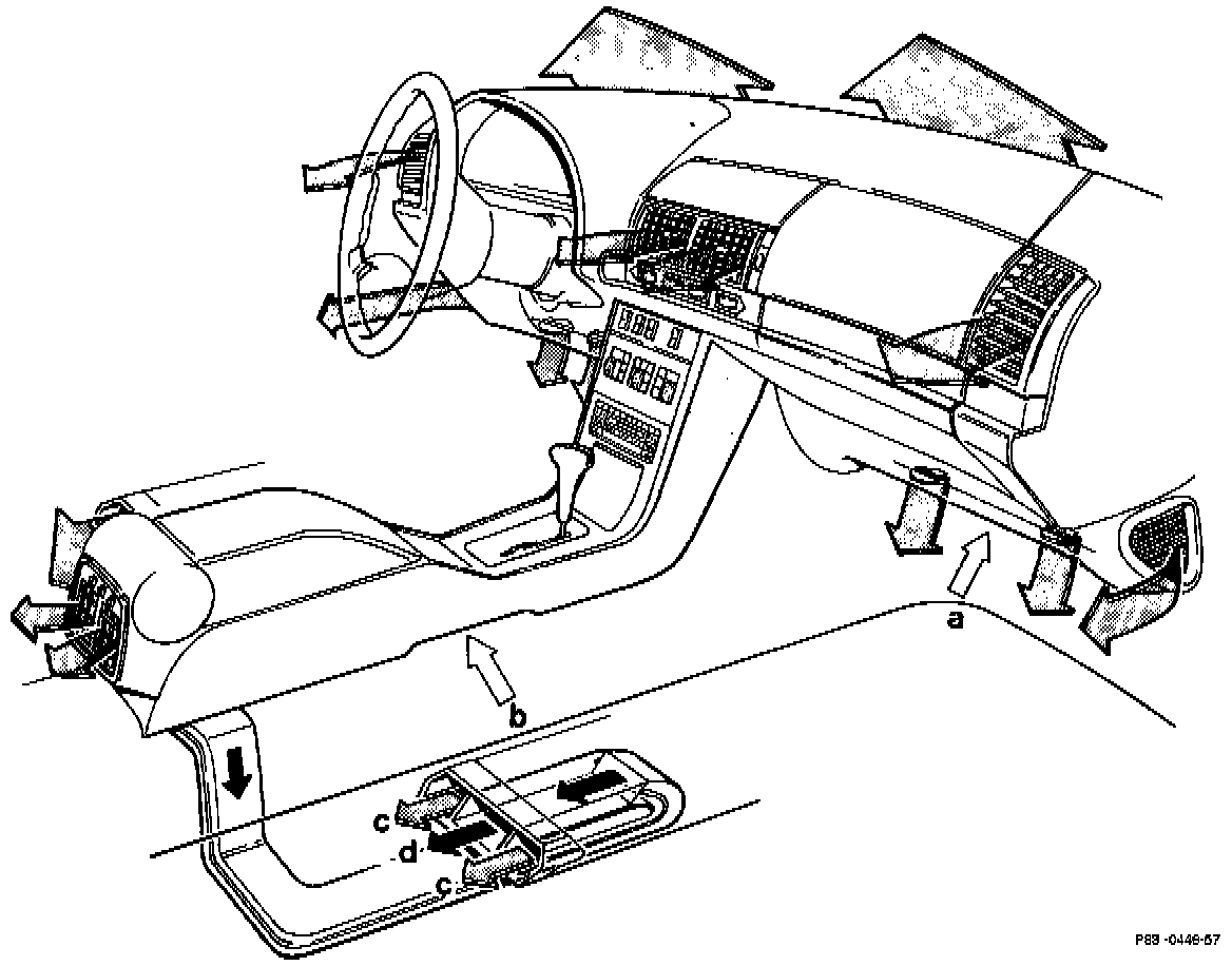 d. Center rear footwell air outlet, air from rear passenger compartment climate control