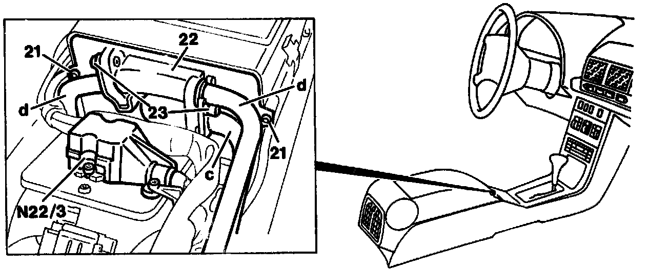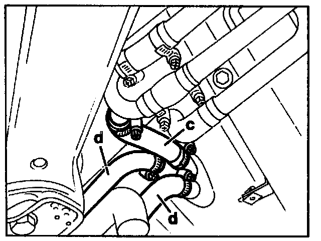 Supply and return hoses (c and d)